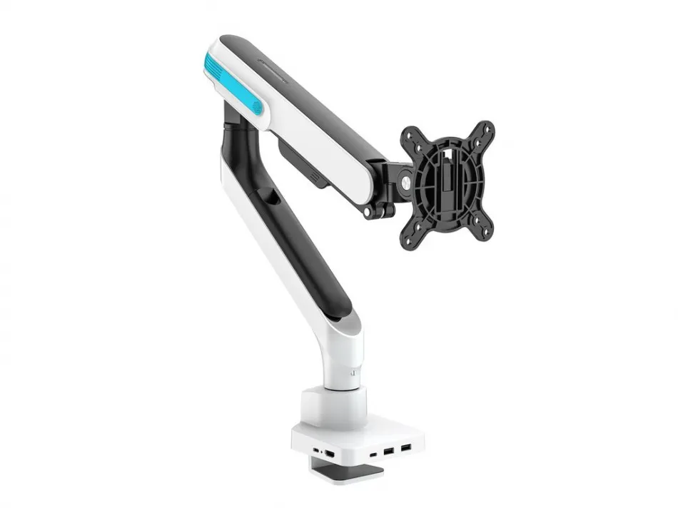 Кронштейн exell exi-mg71-h для монитора 17"-32", газлифт, vesa 100x100 мм, до 10 кг, наклон +45°/-45°, поворот +90°/-90°, вращение +90°/-90°, usb type-c разветвитель, белый.
