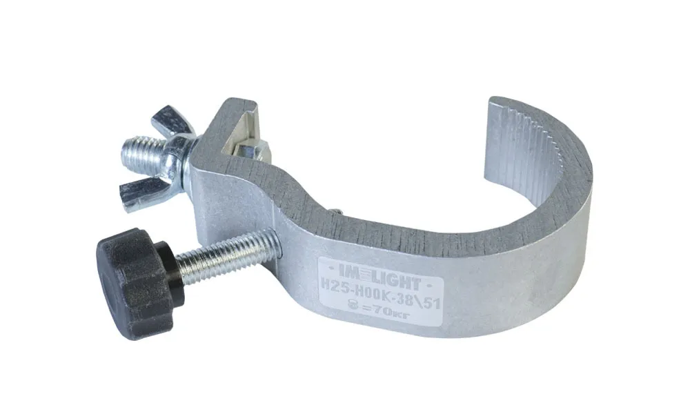 ИМЛАЙТ H25-HOOK-P-48\51 Алюминиевая струбцина крюк шириной 25мм с винтовым фиксатором для трубы d48–51 мм упорная пластина. Допустимая нагрузка 70кг.
