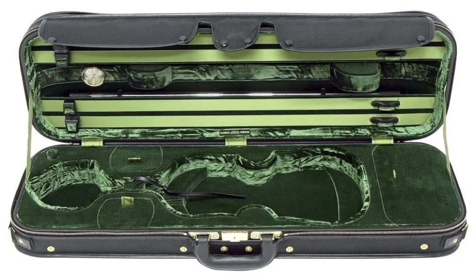 Этот футляр отличается высокой степенью защиты благодаря жесткой конструкции, которая защищает скрипку от ударов и внешних воздействий. Внутренний слой выполнен из мягкого материала, который бережно охватывает инструмент, предотвращая царапины и повреждения. Специальные подушки обеспечивают надежную фиксацию скрипки внутри футляра.