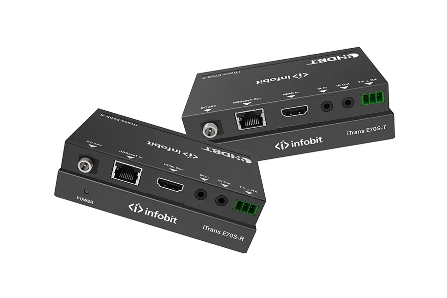 Комплект удлинителя сигнала HDMI Infobit [iTrans E70S] HDBaseT, (Передатчик + Приемник), HDMI 10,2 Гб/с,1080p до 70 метров, 4K/30Гц до 40 метров, IR and RS232, POC и HDCP 2.2.