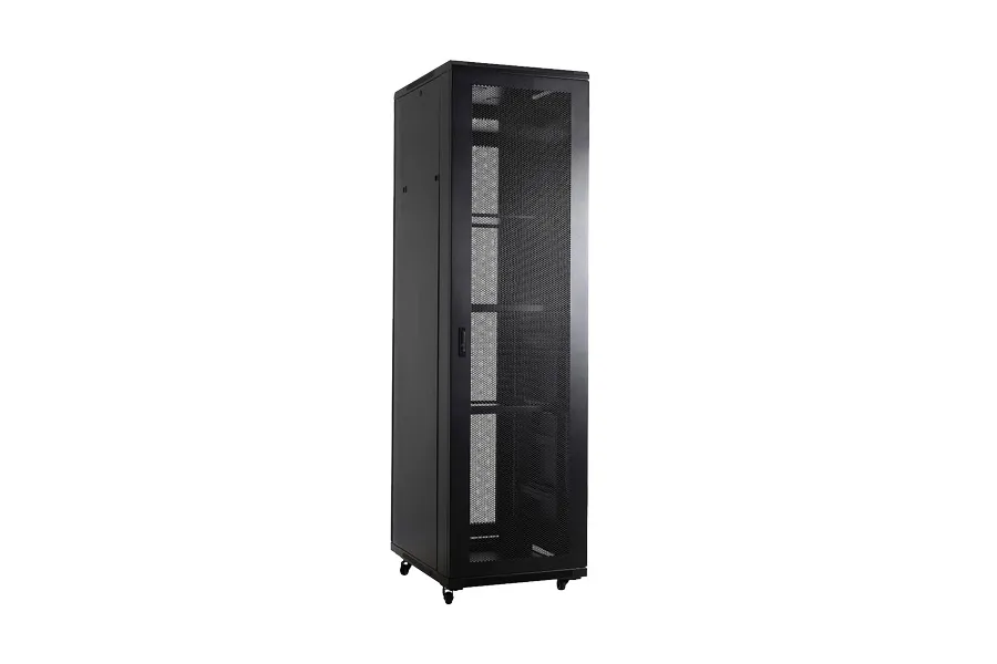 Прочная телекоммуникационная напольная стойка обладает перфорированной передней дверью из стали с замком и съемными боковыми панелями. Перфорированная дверь обеспечивает уровень перфорации 75% для отличной вентиляции. Wize Pro W47U10080R-M также включает в себя двойную блокируемую реверсивную заднюю дверь и отверстия для прокладки проводов сверху и снизу. Увеличенная ширина до 800 мм и 2 вертикальных кабельных организатора в комплекте.