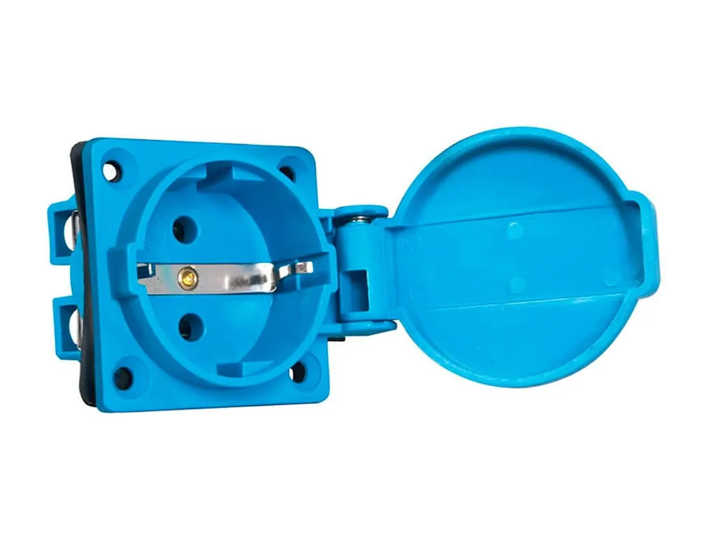 CA 202 панельная розетка (квадратная) с защитной крышкой, ток нагрузки до 16А, цвет синий, копия "Shuko", Work