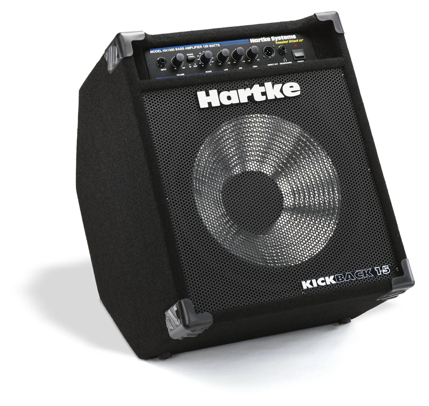 Hartke KICKBACK 15 Басовый комбоусилитель 1х15'' алюм. драйвер, 120 ватт, вход Activ/passiv, балансный выход XLR, выход на наушники, 3-полосный зквалайзер, регулировка Shape, 553x457x423 мм, вес 21кг