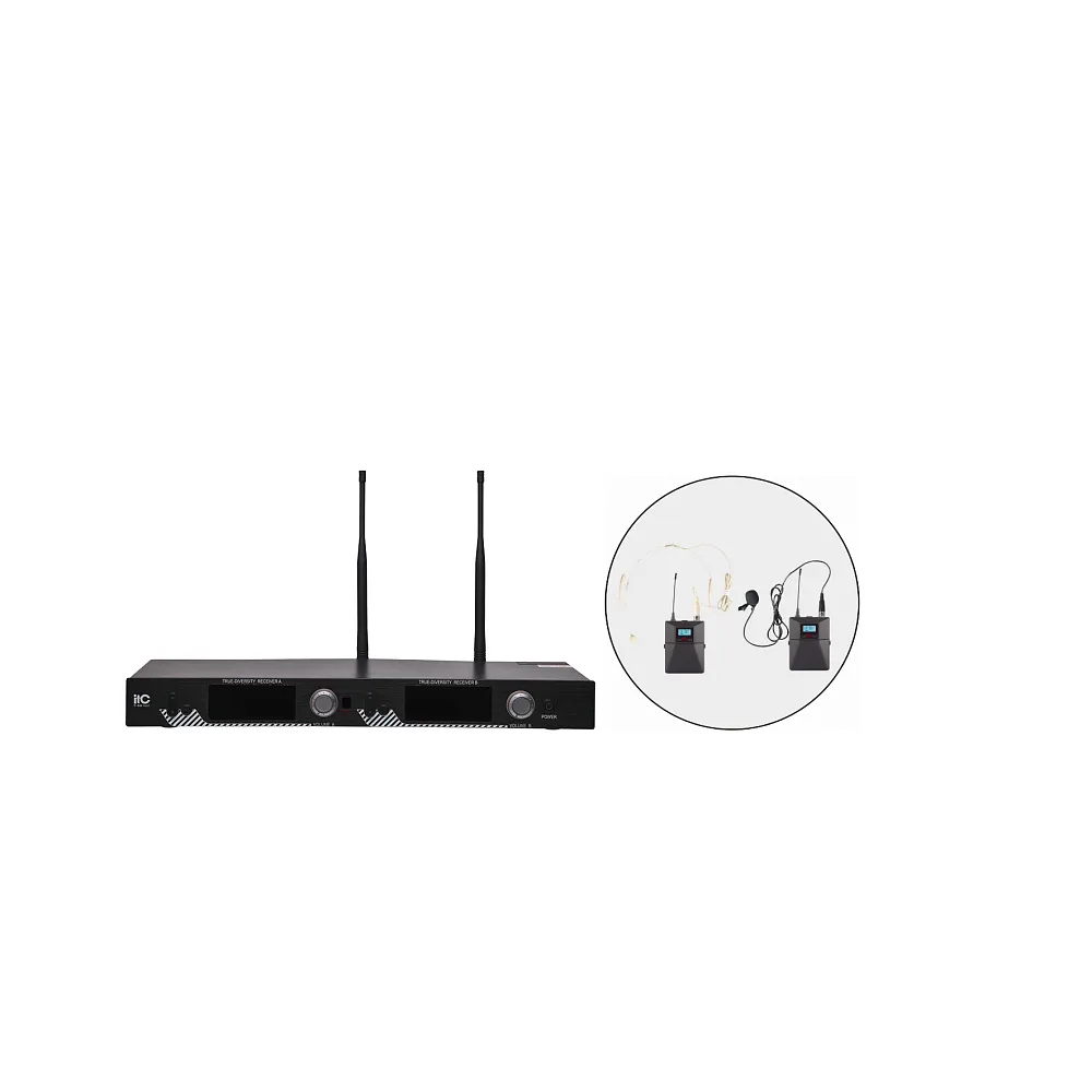 Радиосистема [T-521UW] ITC , UHF двухканальная радиосистема с головным и петличным микрофонами. LCD дисплей. True Diversity. Одновременная работа до 6 каналов