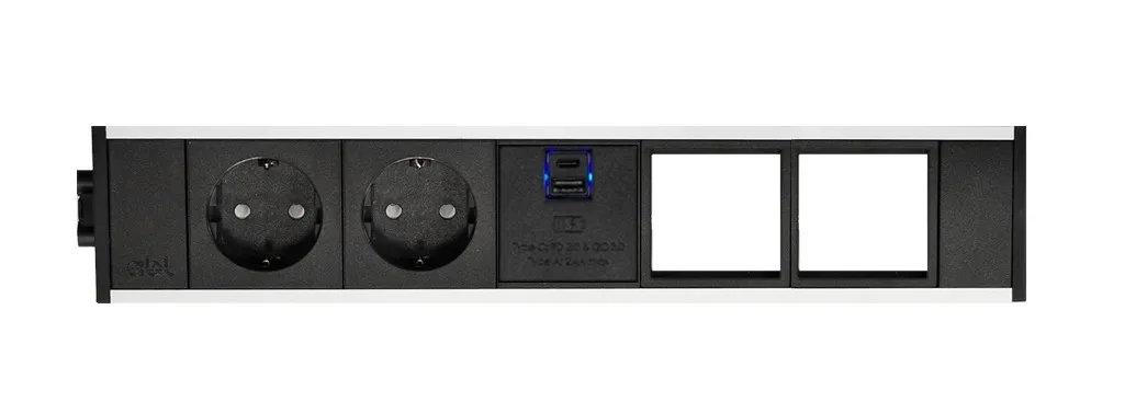ABL 2M200205- Розеточная станция серии Link с 2 розетками, 1xUSB-A, 1xUSB-C и 2 слотами для IMP, черная с серебристым