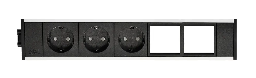 ABL 2M20F3A2- Розеточная станция серии Link с 3 розетками и 2 слотами для IMP, черный с серебристым (2M200302)