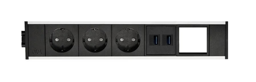 ABL 2M20F3F4- Розеточная станция серии Link с 3 розетками, 2xUSB-A и 1 слотом для IMP, черная с серебристым (2M200309)