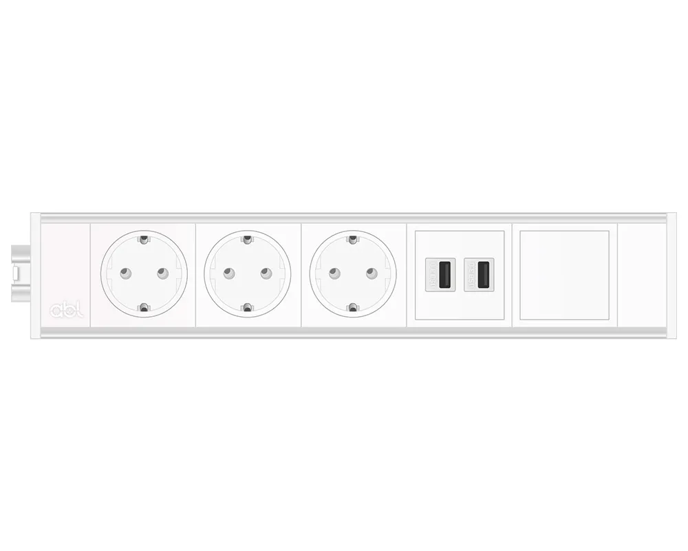 ABL 2M21F3F4- Розеточная станция серии Link с 3 розетками, 2xUSB-A и 1 слотом для IMP, белая с серебристым (2M210309)