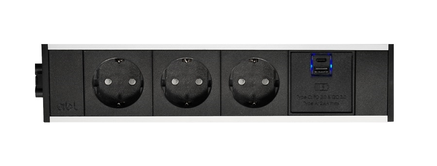 Розеточная станция серии Link с 3 розетками, 1xUSB-A, 1xUSB-C, черная с серебристым (2M200303)Характеристики