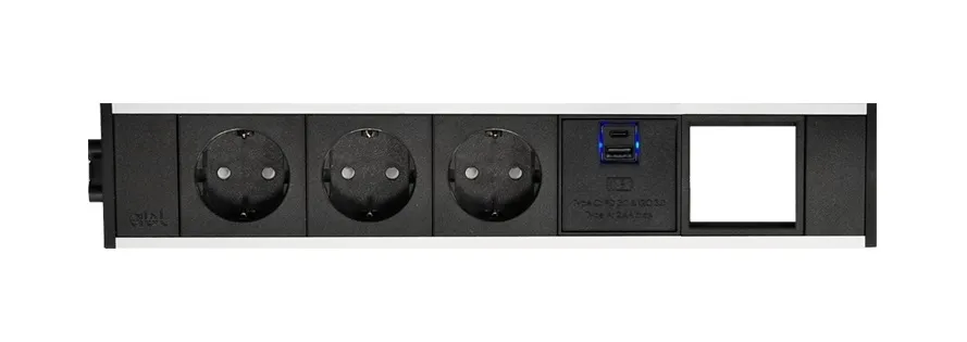 ABL 2M20F3A4- Розеточная станция серии Link с 3 розетками, 1xUSB-A, 1xUSB-C и 1 слотом для IMP, черная с серебристым (2M200304)