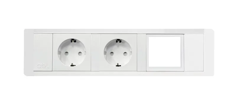ABL 2F81F2A1- Встраиваемая розеточная станция серии Level тип E (Level-E) с 2 розетками и 1 слотом для IMP, белая с серебристым