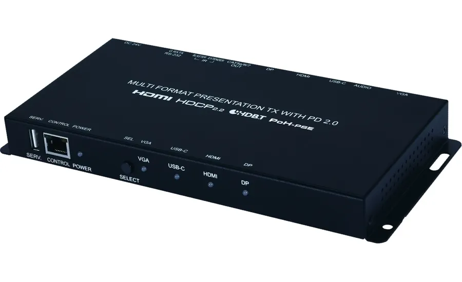 Cypress CH-1539TXPLPD- Передатчик, коммутатор c автопереключением сигналов HDMI, DP, USB-C, VGA с аудио, ИК и RS-232 в витую пару CAT5e