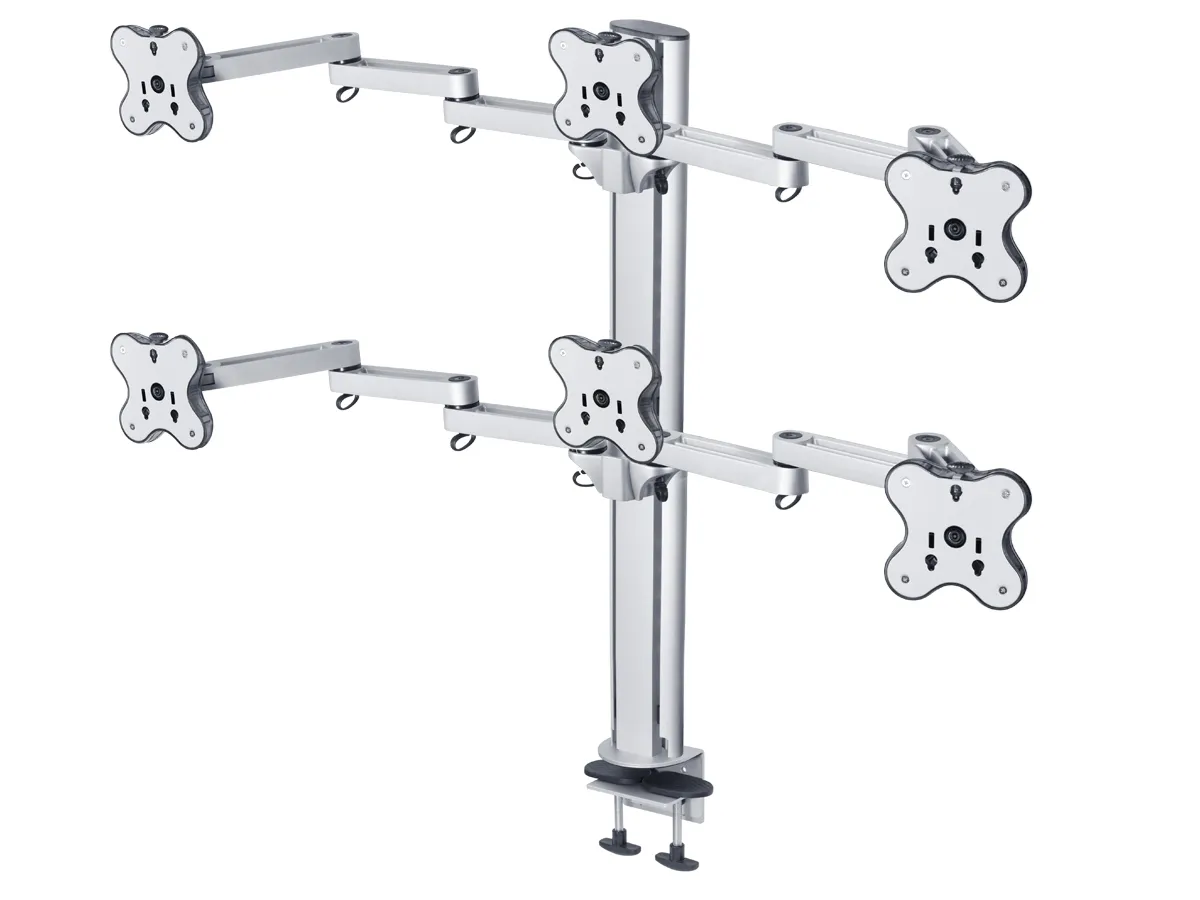 ErgoFount BTFS-603C- Настольное крепление для 6 мониторов диагональю до 24'' (2х3), четыре из которых на шарнирных вылетах, зажим типа C, макс. нагрузка 72 кг