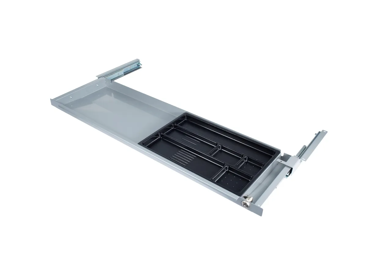 ErgoFount PTS8725S-L- Выдвижной ящик-органайзер с замком для канцелярских принадлежностей и ноутбука под стол, большой, серебристый
