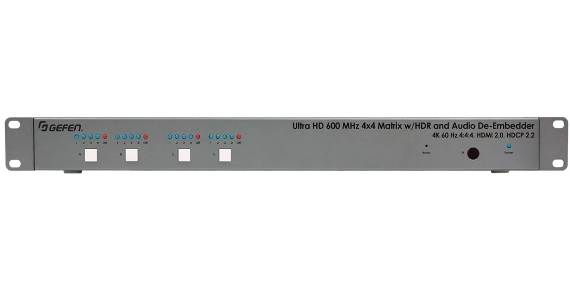 Gefen EXT-UHD600A-44- Матричный коммутатор 4х4 HDMI 2.0 с полосой пропускания 600 МГц и деэмбеддированием аудио