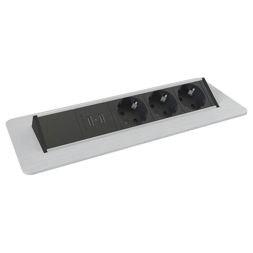 Kondator 935-F300- Встраиваемая розеточная станция серии Axessline с 3 розетками и 2xUSB, серебристая