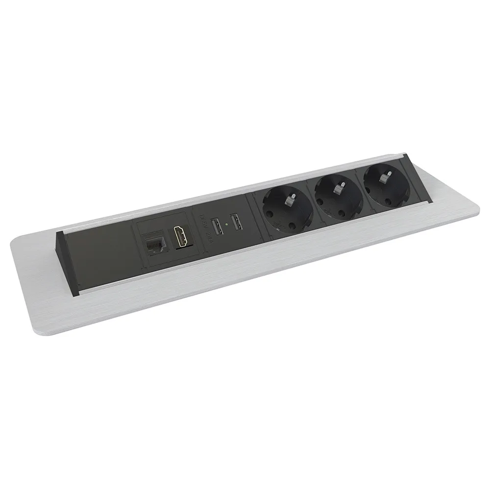 Kondator 935-F400- Встраиваемая розеточная станция серии Axessline с 3 розетками, 1хRJ45, 1хHDMI и 2xUSB, серебристая