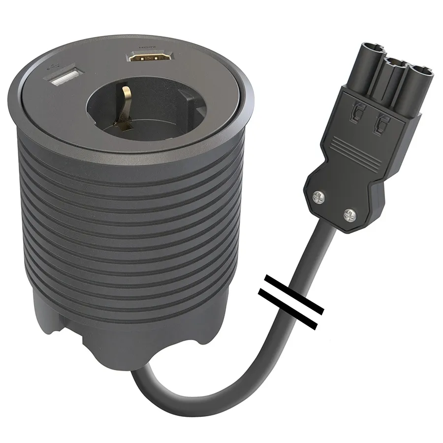Kondator 935-PD13-GST- Встраиваемая розетка с тремя уровнями установки для монтажа в стол со встроенными разъемами 1xUSB, 1xHDMI