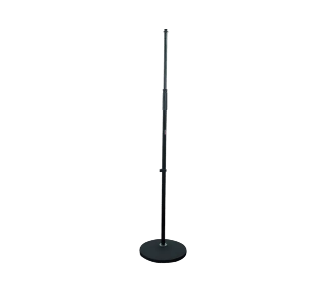 Стойка оснащена круглым чугунным основанием диаметром 250 мм, что обеспечивает отличную устойчивость и защищает от случайных опрокидываний. Такой вес и конструкция основания делают стойку надёжной даже в динамичных условиях выступлений.