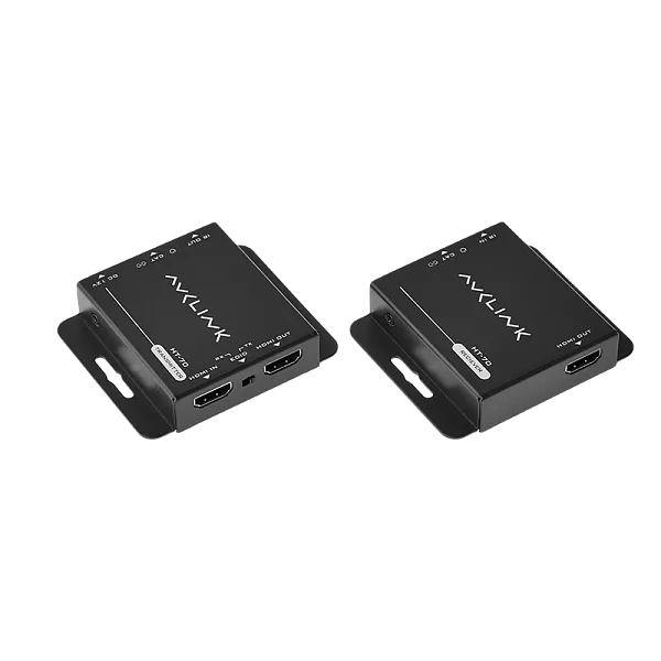 AVCLINK HT-70 Комплект передатчик и приемник сигнала HDMI по витой паре. Позволяет передавать сигнал HDMI с разрешением 4k@30Hz на расстояние до 70 м по витой паре CAT6. Также позволяет передать ИК-сигнал управления. Наличие сквозного выходу HDMI у переда