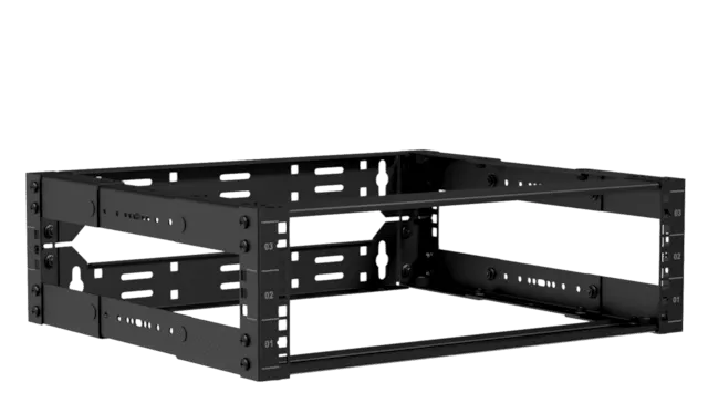 Caymon OPR303A/B Стойка телекоммуникационная с открытой рамой 19". Материал сталь. Открытая конструкция. Монтажная высота 3U. Габаритные размеры, мм (Ш x В (без резиновых ножек) x Г): 520x 158 x 300-450. Масса 7 кг. Цвет черный (RAL9004)