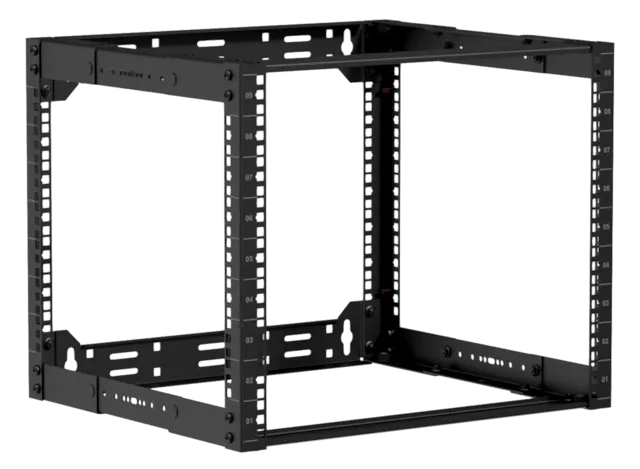 Caymon OPR309A/B Стойка телекоммуникационная с открытой рамой 19". Материал сталь. Открытая конструкция. Монтажная высота 9U. Габаритные размеры, мм (Ш x В (без резиновых ножек) x Г): 520 x 425 x 300-450. Масса 8,5 кг. Цвет черный (RAL9004)