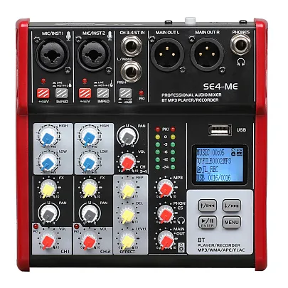 BG SE4-ME Пульт микшерный, 2 моно, 1 стерео, процессор эффектов, USB, MP3 плеер, BT, 2 полосный эквалайзер, фантомное питание