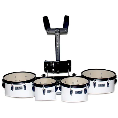 AP Percussion QAZ-04 Набор том барабанов маршевый профессиональный 8" 10" 12" 13" белый, черная фурнитура с держателем, палочки