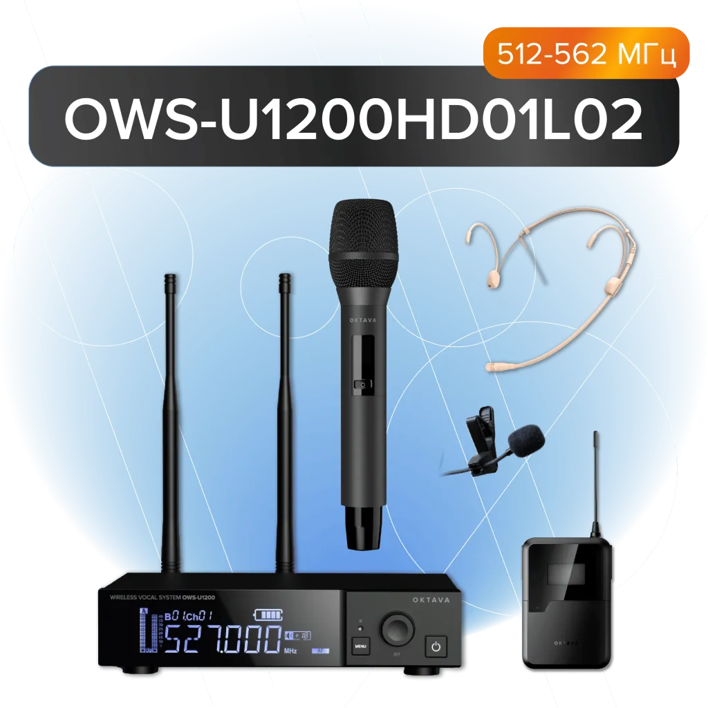 OWS-U1200HD01L02 радиосистема с ручным микр.,головным микр., петличным микр. L02 без кейса Октава