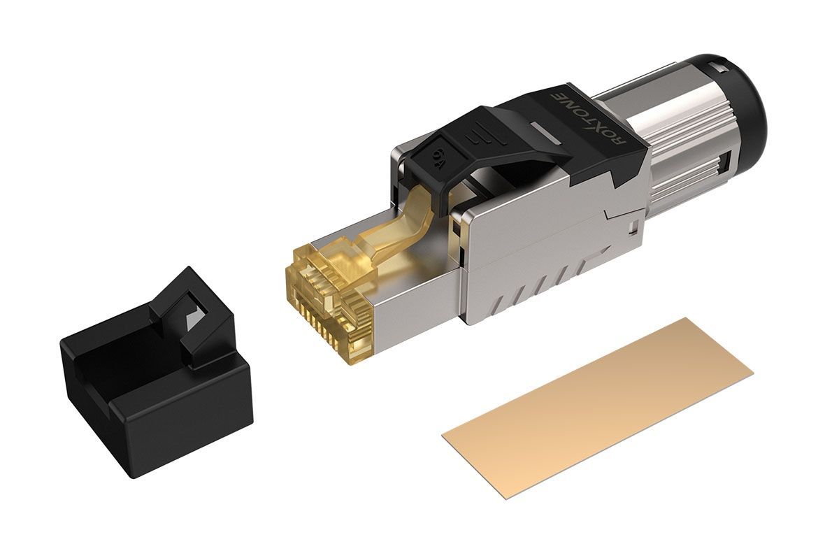 ROXTONE RJ45C6A-MH NEW Высококачественный Ethernet Разъем для кабеля категории CAT6A, IP20 (пылезащитный), Диаметр проводника: 1,2 - 1,65мм, 100% экранирование. для кабеля AWG24/7 - AWG22/1, разъмы: позолоченная бронза, корпус: вылитый под давлением цинко