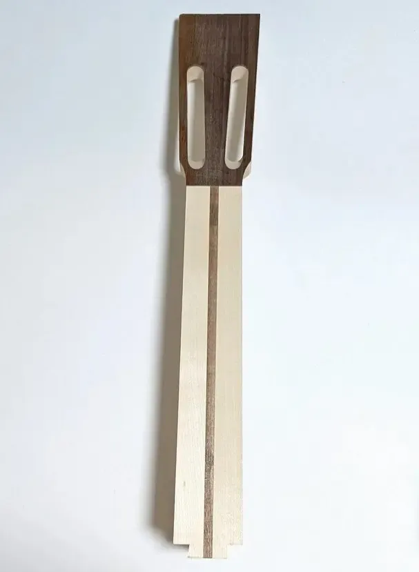 Проклейка из ореха придаёт грифу уникальный внешний вид и усиливает звуковые характеристики, добавляя теплоты и глубины звучанию. Орех известен своей способностью передавать богатый тон, что делает этот гриф особенно привлекательным для музыкантов, ищущих насыщенное и выразительное звучание.