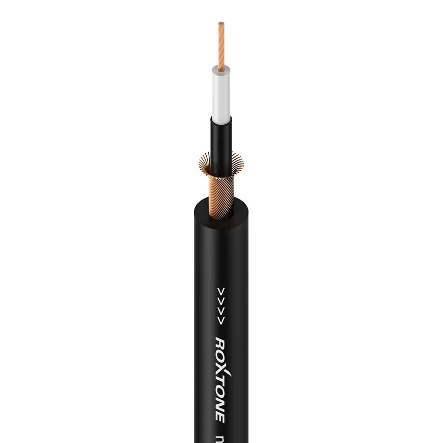 ROXTONE GC010/100 Black Гибкий инструментальный кабель повышенной прочности, 1х0,22мм2, 28 жил в проводнике по 0,1мм, 100% экранирование (медная спираль: 48x0.10мм + гальваническая изоляция), D 6мм, цвет Черный, Температурный режим эксплуатации: -20/+70,
