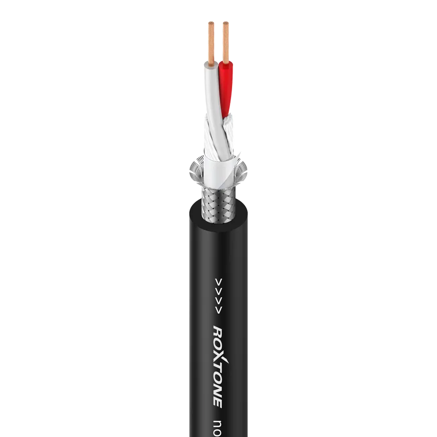 ROXTONE MC010/100 Black Симметричный микрофонный кабель из бескислородной меди 100м на пластиковой катушке, 2x0,30мм2., D 6,5мм, AWG: 22., 95% экранирование (сетка из луженой медной проволоки 128х0,10мм), цвет: Черный. Температурный режим эксплуатации: -2