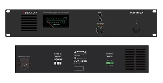 ВЕКТОР УМТ-1120Д Усилитель мощности класс D 120 Вт 100 В, 70 В. Линейные вход /выходы, (разъем тип Phoenix). Индикация режимов работы усилителя. Регулировка уровня выходного сигнала, регулировка НЧ/ВЧ, многоступенчатая защита. Питание 220-230 В/50-60 Гц.