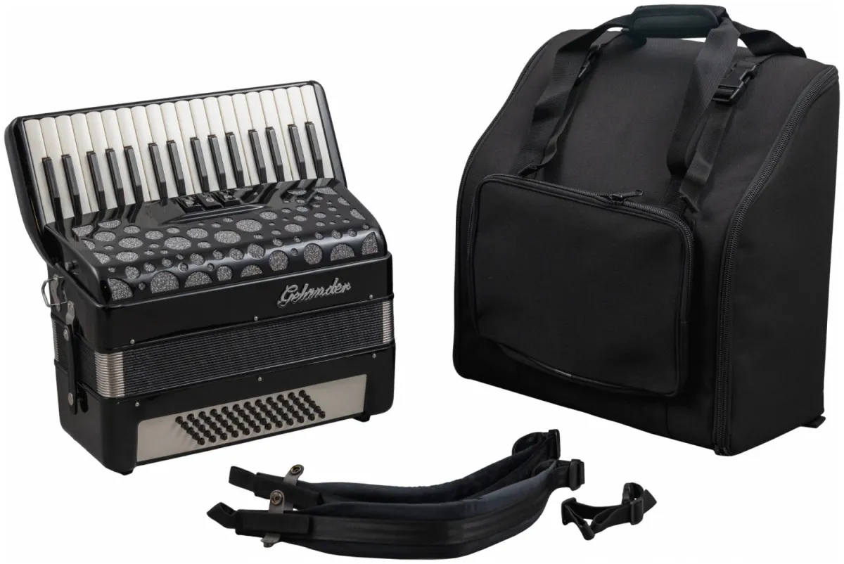 Аккордеон GELANDER GH1860 BK также оснащен высококачественными мехами, которые обеспечивают легкость нажатия клавиш и плавность звучания. Цвет черный придает инструменту стильный и современный вид, что делает его не только музыкальным инструментом, но и элементом стиля.