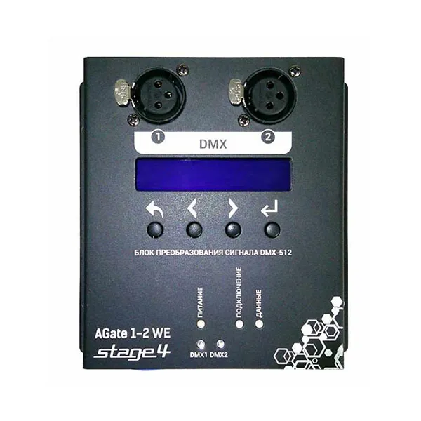 STAGE4 AGate 1-2 WE Конвертер сигнала ArtNet→DMX и декодер DMX→RGB-лента (2x170 пикс.) / Стена или струбцина / 2 потока (выбор 1-16) / Art-Net I, II, III / 100 Мбит\с / PowerCon и POE / 0,55 кг