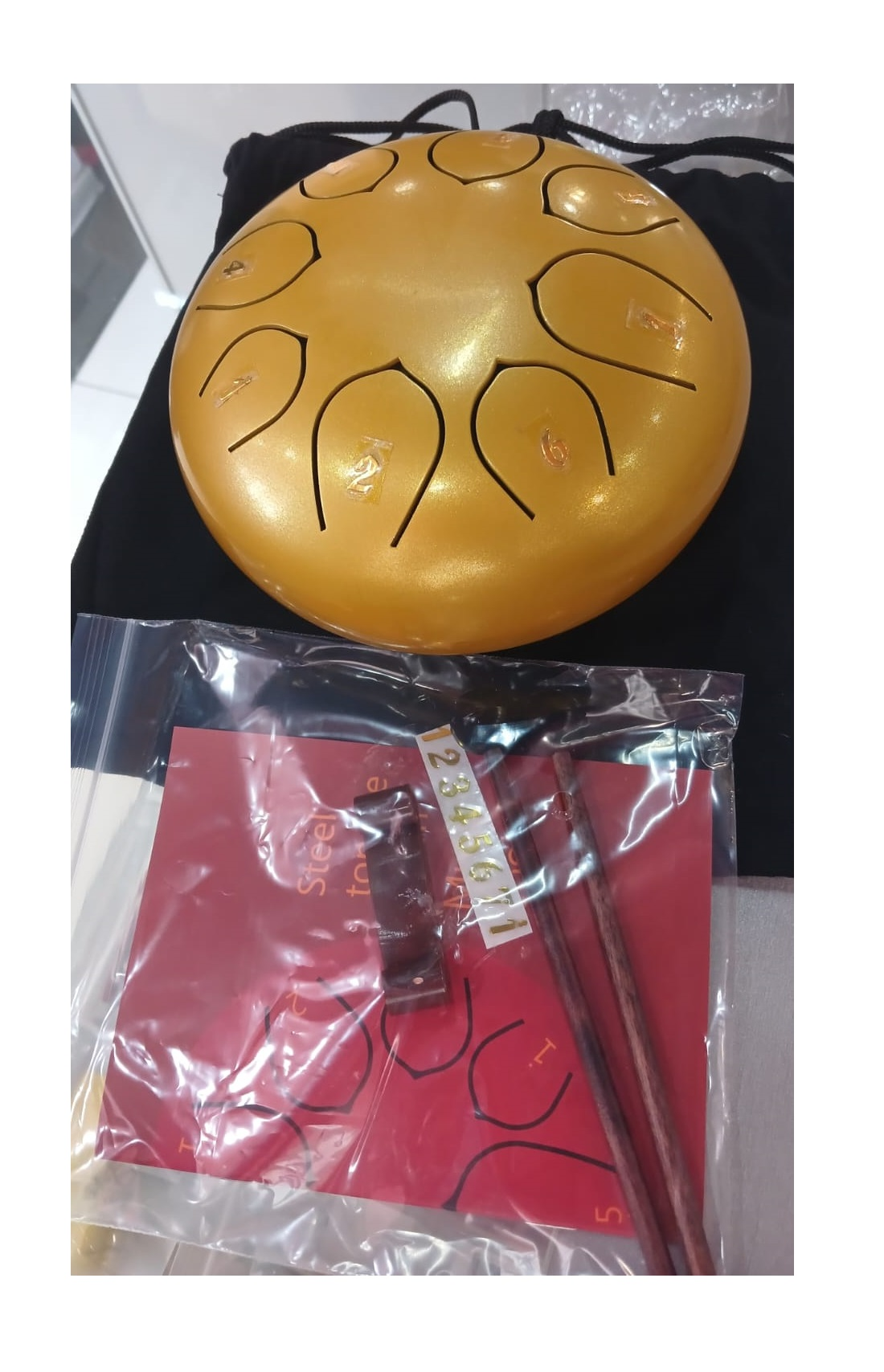 Глюкофон также снабжен резиновыми ножками, которые предотвращают скольжение и защищают поверхность, на которой он расположен. В комплект входит специальный молоточек, позволяющий извлекать чистые и глубокие звуки, что добавляет дополнительный комфорт в процессе игры.