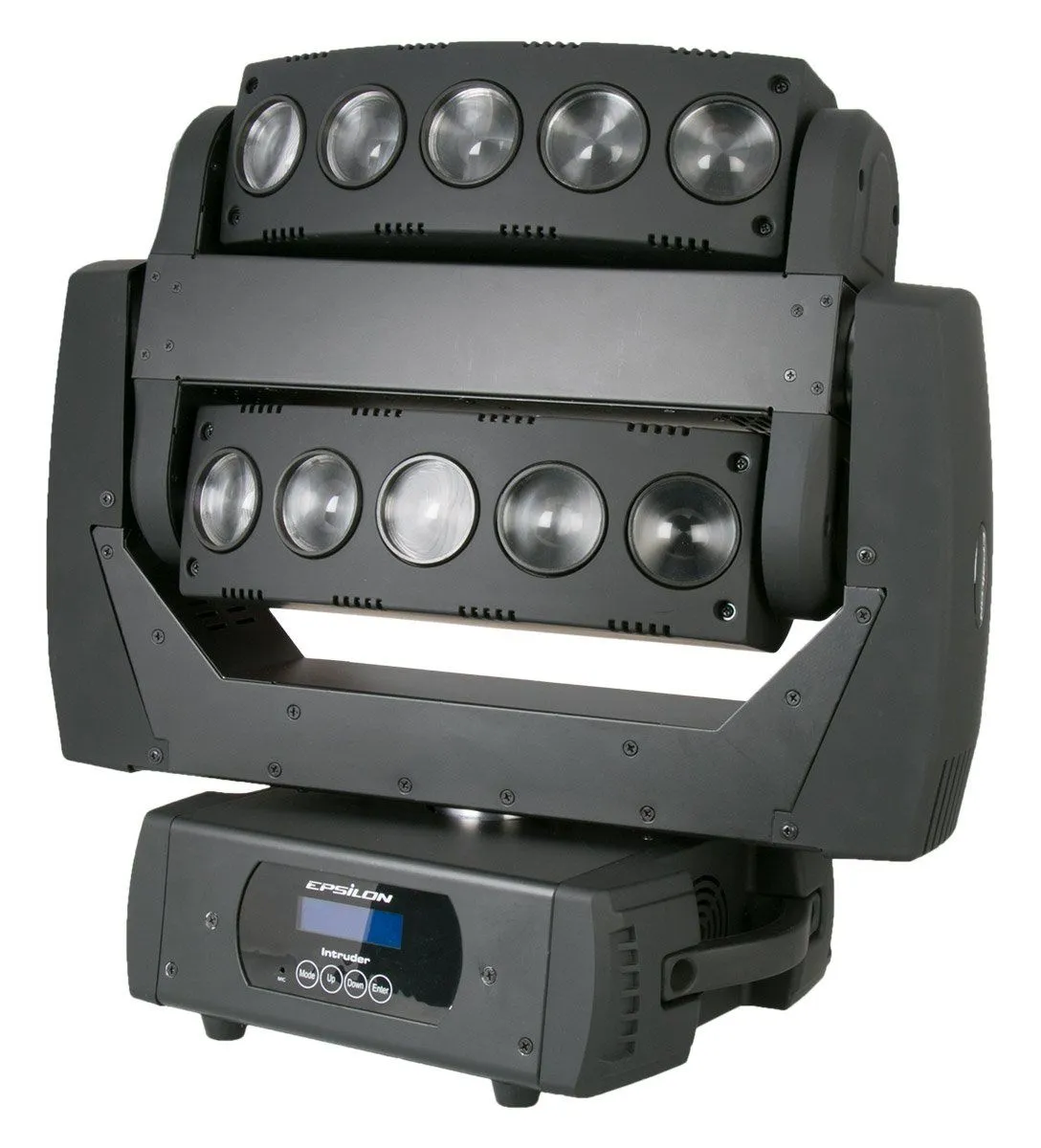 В целом, Intruder / Голова полного вращения с 2-мя параллельно вращающимися панелями / EPSILON является отличным выбором для тех, кто ищет яркое и динамичное освещение для своих мероприятий. Ее компактный размер, легкий вес и возможность работы в режиме звуковой активации делают ее идеальным выбором для дискотек и вечеринок.