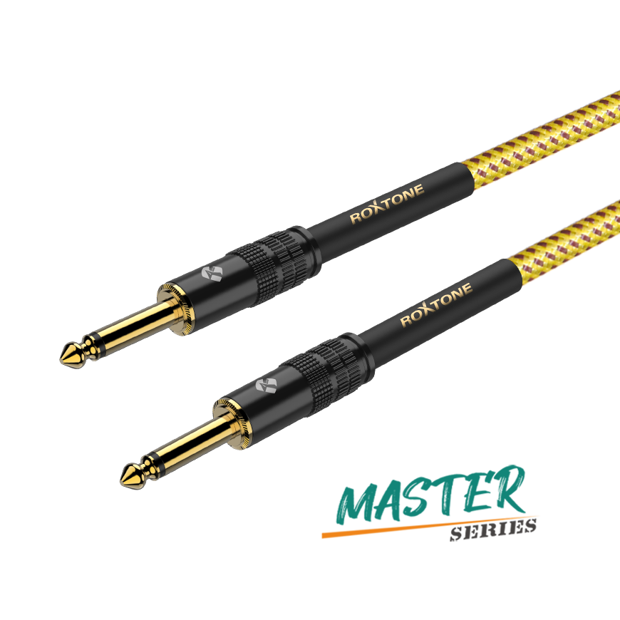 ROXTONE MGJJ310/1 Профессиональный инструментальный кабель в текстильной оплетке, GC040V, 1x0.24mm2, диаметр: 8,6мм, Экранирование: 100%, разьемы 2х6,3мм моно Jack (2xRJ076M), Цвет: Желто-коричневый, 1м