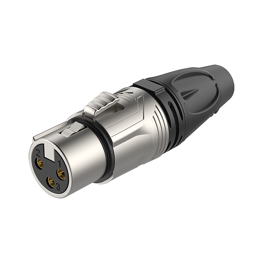 ROXTONE RX3F-NG Разъем cannon кабельный 1шт., мама 3-х контактный, корпус: металл, цвет: серебро, покрытие контактов: золото. Каждый разьем в блистере, 640шт. в коробке размером 46x33x40см в которой 8 упаковок по 80 коннекторов в индивидуальном блистере)