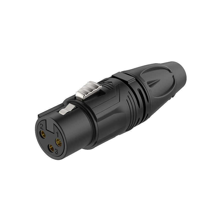 ROXTONE RX3F-BG Разъем cannon кабельный мама 3-х контактный, металл с электрофоретическим покрытием, цвет: Черный. 1шт/PE bag, 80шт. в коробке (22х17х19см.), 8 коробок в мастер упаковке (46х36х40см.)