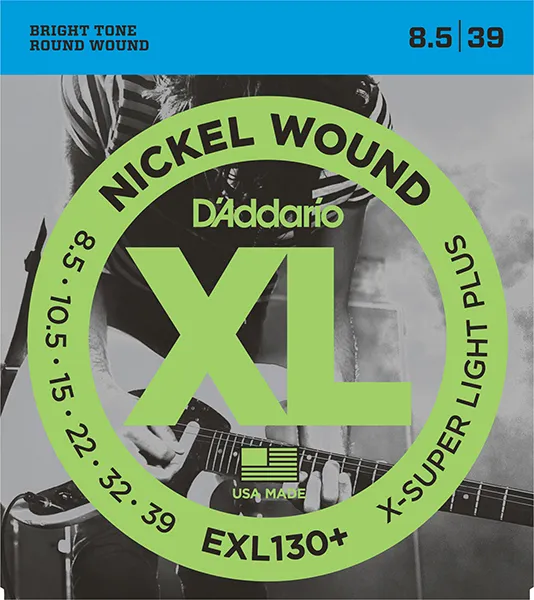 EXL130+ Nickel Wound Комплект струн для электрогитары, Extra-Super Light Plus, 8.5-39, D'Addario подходит для различных жанров музыки, от рока и металла до джаза и блюза. Они идеально подходят для гитаристов, которые предпочитают играть на высоких нотах и быстрых мелодиях.