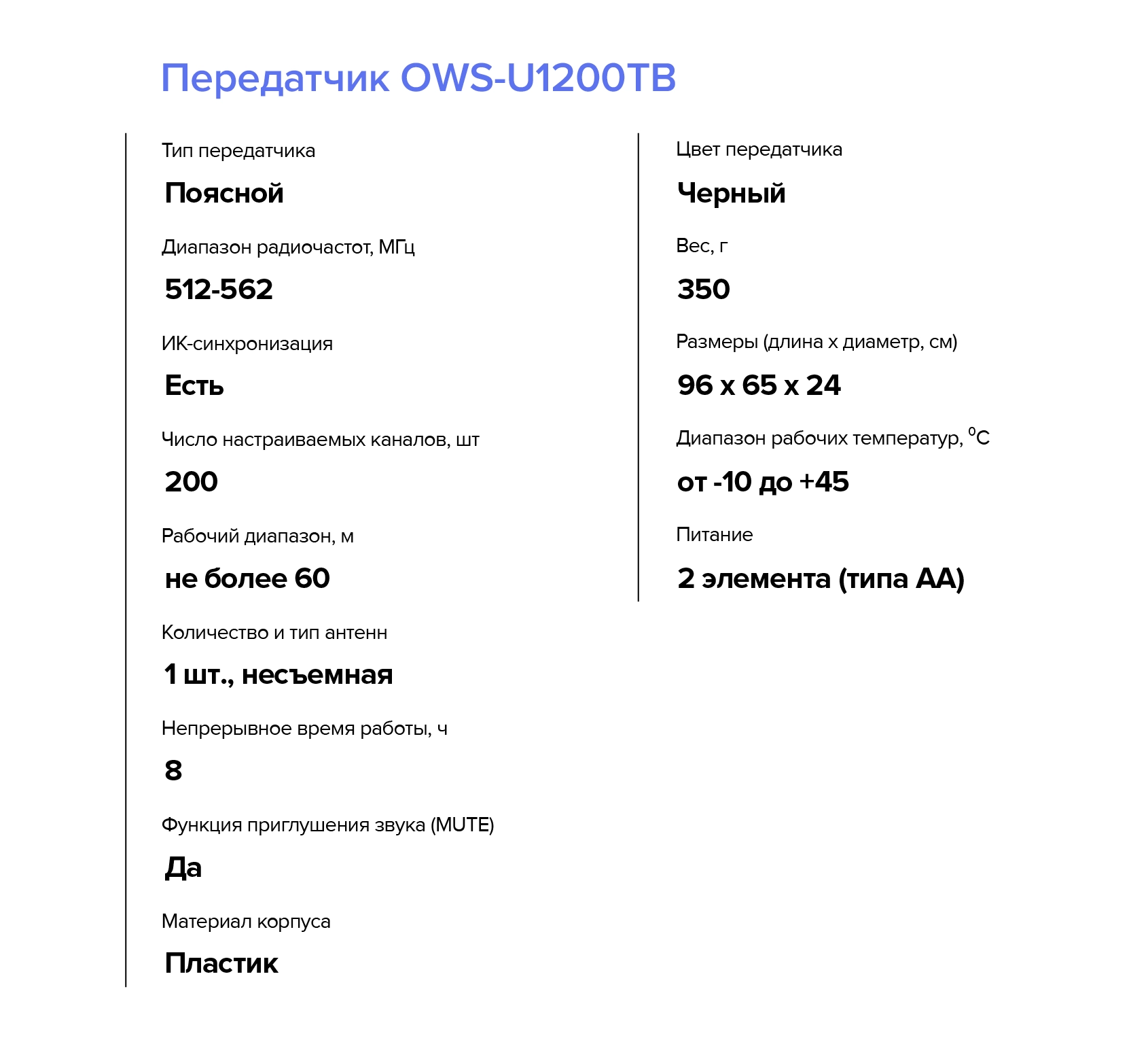 - Мобильность: автономная работа до 8 часов и компактный размер передатчика дают свободу передвижения;