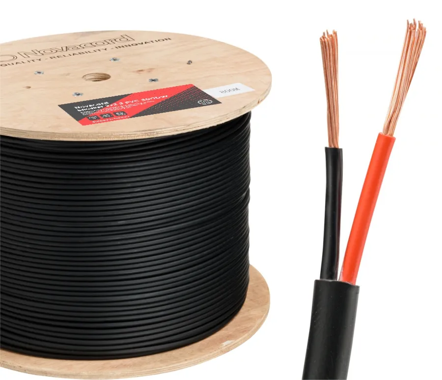 Кабель состоит из двух медных проводников из многожильной бескислородной меди (OFC), сечение проводников - 2.5 мм2, Ø 2.05 мм, изоляции из PVC материала красного и черного цвета и гибкой PVC оболочки матового черного цвета RAL9005. Общий диаметр кабеля 8.2 мм.