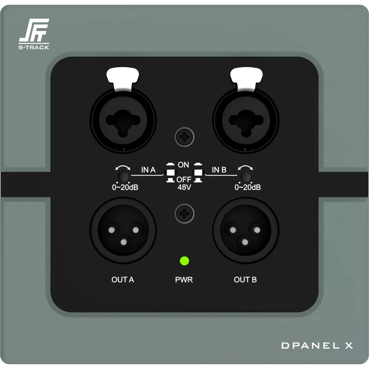 S-track dpanel x настенный dante/аналог интерфейс, 2 мик.(48в, xlr combo)-лин. вх/ 2 вых.(xlr), poe