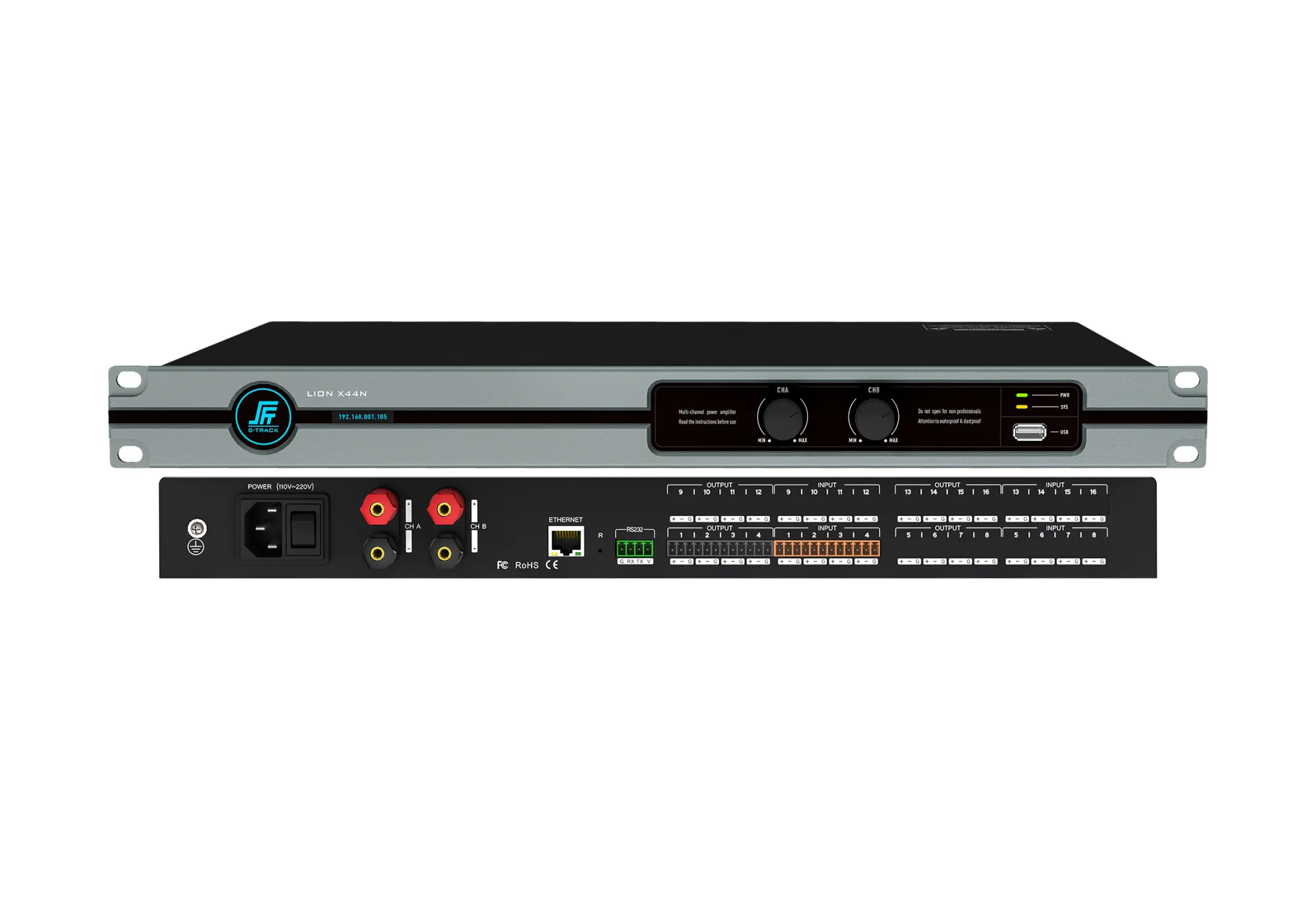 S-track lion x44n 4 вх/ 4 вых аудиопроцессор с усилителем мощности, алгоритмы afc+aec+anc