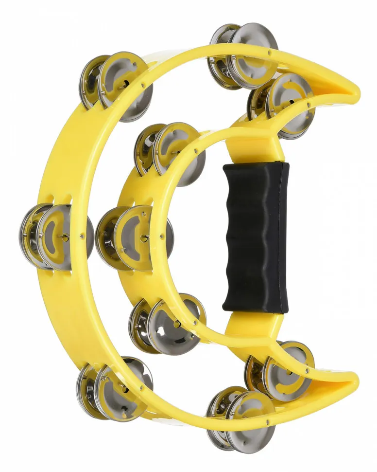 Тамбурин оснащен 8 парами джинглов, расположенными на одной стороне, что позволяет создавать насыщенные звуковые эффекты. Джинглы выполнены из высококачественного металла, что гарантирует долговечность и отличный звук при каждом ударе.