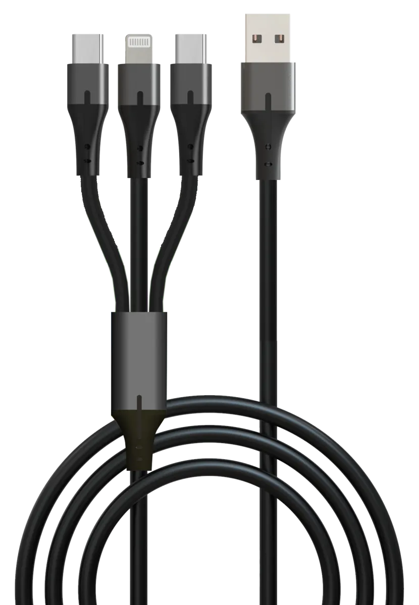 00-00028390 Кабель GP21-3-1-1.2M USB (m)-Type-C/Lightning/Type-C (m) 1.2м черный, GoPower