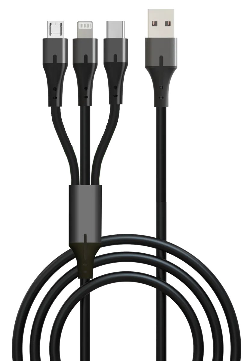 00-00028388 Кабель GP21-3-1.2M USB (m)-Type-C/Lightning/microUSB (m) 1.2м черный, GoPower
