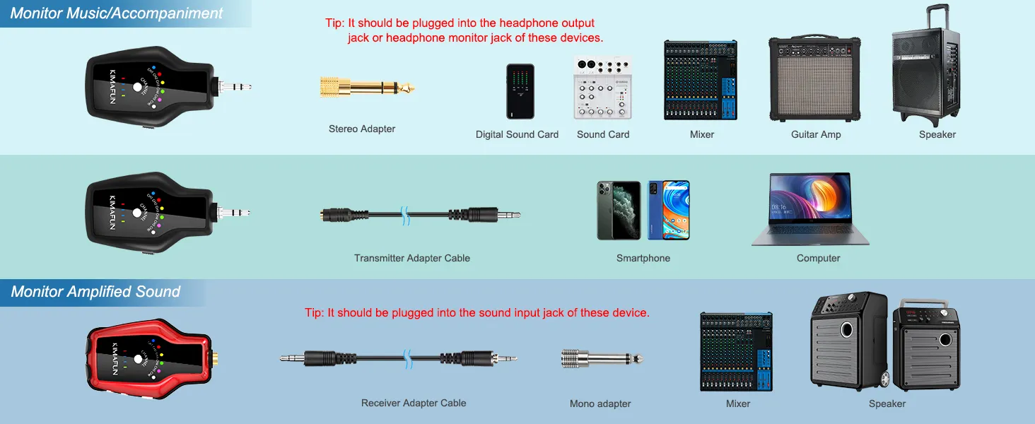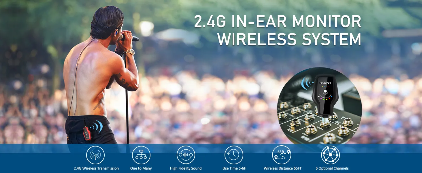 Cистема внутриушного мониторинга kimafun km-g150-3(t1r2) - беспроводная 2.4 ггц внутриушная система мониторинга. два приемника в комплекте